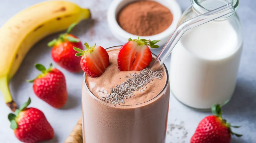 This smoothie delivers antioxidants from cacao and strawberries, potassium from banana, and fiber for digestion support. It provides steady energy without that heavy, post-dessert slump. Personally, I love that it feels indulgent but doesn’t weigh me down. It’s chocolate therapy—just smarter.