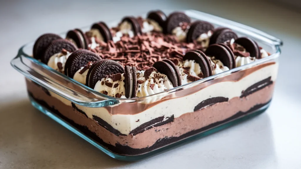 Sprinkle chocolate shavings or extra crushed Oreos on top. Because restraint is overrated.