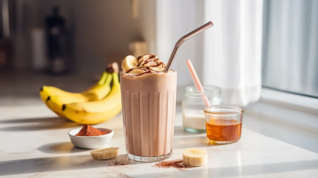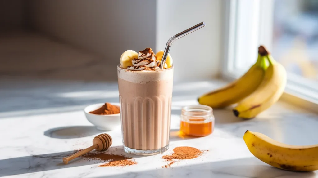 High-Protein Banana Milkshake with Cocoa and Honey